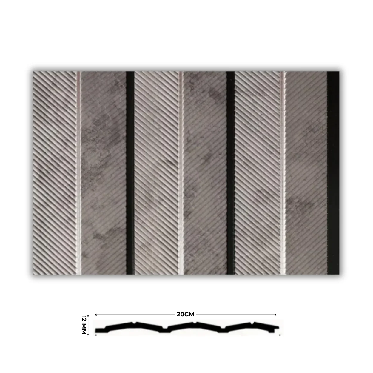لوح بديل خشب كوري مستورد من خامة PS، بتصميم مخدد أنيق، عرض 20 سم وسُمك 12 مم، يمنح لمسة ديكور راقية ومقاومة عالية للرطوبة والعوامل الجوية.