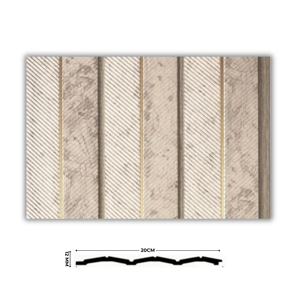 لوح بديل خشب كوري مستورد من خامة PS، بتصميم مخدد أنيق، عرض 20 سم وسُمك 12 مم، يمنح لمسة ديكور راقية ومقاومة عالية للرطوبة والعوامل الجوية.