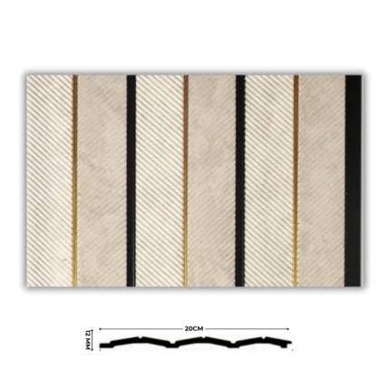 لوح بديل خشب كوري مستورد من خامة PS، بتصميم مخدد أنيق، عرض 30 سم فلات وسُمك 12 مم، يمنح لمسة ديكور راقية ومقاومة عالية للرطوبة والعوامل الجوية.